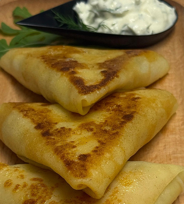 Best described for UK customers as traditional Ukrainian savoury filled crêpes, freshly prepared and cooked to order.